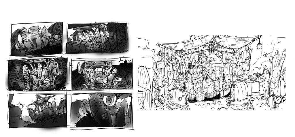 Participation à un concours Huion, Création d’un Concept d’un Cactus ‘Vivant’ capable de se déplacer et marchander dans le désert. Obtention d’une mention Honorable.